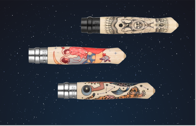 Alle Messer der „Cosmos“-Kollektion sind mit einem Griff aus Buchenholz versehen, dessen Design im Sublimationsverfahren aufgebracht wird. Die 8,5 cm lange Edelstahlklinge sorgt für die bewährte OPINEL-Qualität. Das Modell von Benjamin Jeanjean ist zusätzlich mit schwarzer PVD-Beschichtung versehen.