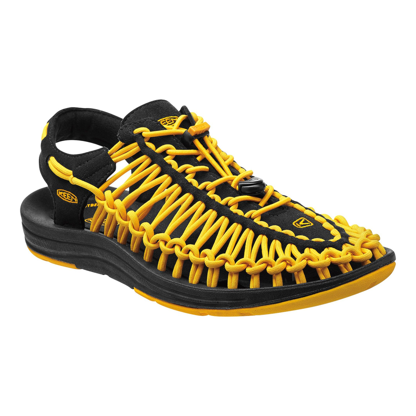 "Angefangen haben wir mit einer genauen Betrachtung des Fußes. Danach wurde jedes einzelne Teil, aus dem eine Sandale üblicherweise gemacht ist, umgestaltet, um der Fußform bestmöglich zu entsprechen", erklärt Jeff Dill, Business Unit Director der Trailhead-Kategorie bei Keen. "Wir sind mit einem einzigen Element gestartet: der Schnur. Dann haben wir nur das hinzugefügt, was unbedingt notwendig war." Das Ergebnis bringt gerade mal 290 Gramm auf die Waage und ist eine klare Empfehlung für Trendsetter im Sommer.