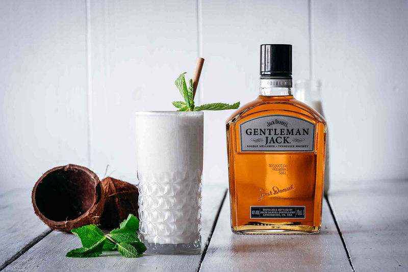 1. Jack Daniel's Gentleman Jack zusammen mit der Kokosmilch und dem Kokossirup in einen Mixer geben und gut durchmixen