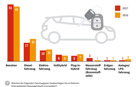 Fahrzeuge mit Dieselantrieb verlieren die Gunst der Verbraucher: Das Kaufinteresse sank im Vergleich zum Vorjahr von 21 auf nur noch 17 Prozent. Alternative Antriebe können von...