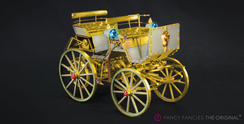 Doch die Feier hat einen Wermutstropfen. Es fehlt der Jubilar. Der Urvater aus der langen Ahnenreihe aller Oldtimer ist nicht dabei. Das erste Original aller vierrädrigen Automobile bleibt verschwunden. Um das Jubiläum trotzdem zum strahlenden Event zu gestalten haben die ambitionierten Sammler und ff fancyfancies ein besonderes Modell der Daimler Motorkutsche - das lange vergessen auf einem Dachboden schlummerte - mit ca. 3.000 kleineren und 12 Multikarätern farbintensiver fancy Diamanten bestückt.